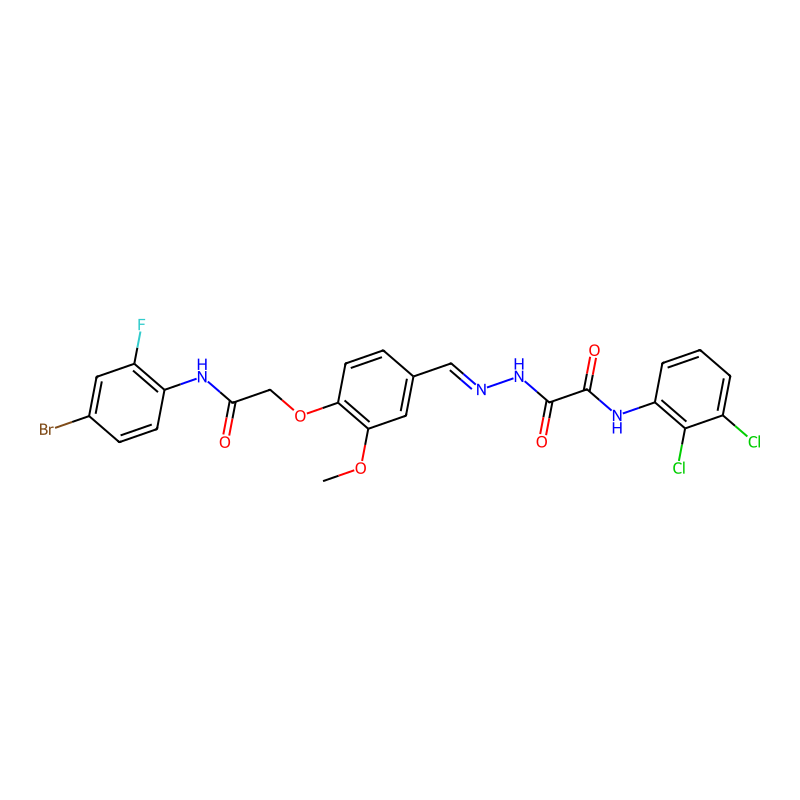 COC1=C(C=CC(=C1)C=NNC(=O)C(=O)NC2=C(C(=CC=C2)Cl)Cl)OCC(=O)NC3=C(C=C(C=C3)Br)F |