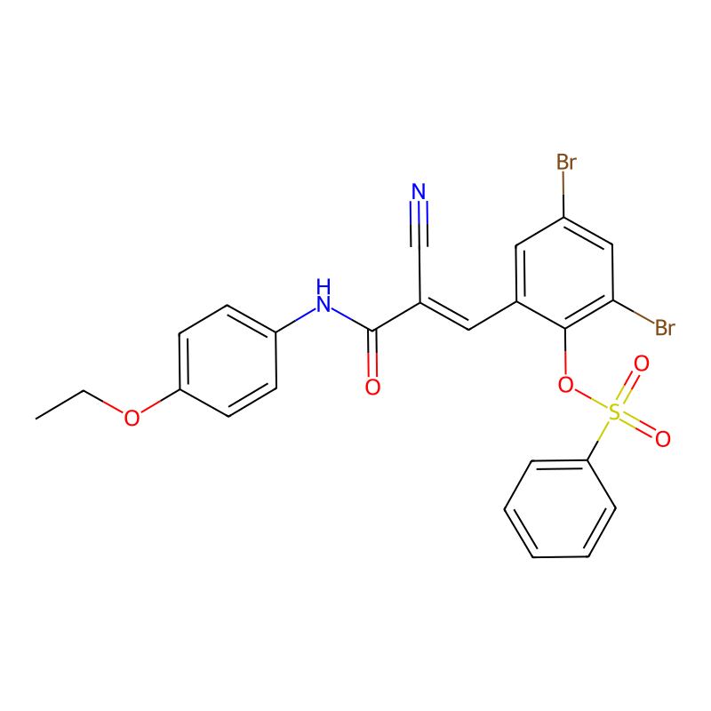 CCOC1=CC=C(C=C1)NC(=O)C(=CC2=C(C(=CC(=C2)Br)Br)OS(=O)(=O)C3=CC=CC=C3)C#N |