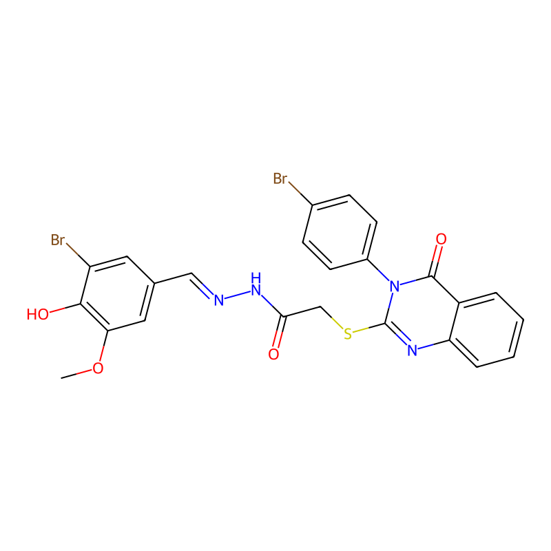 COC1=C(C(=CC(=C1)C=NNC(=O)CSC2=NC3=CC=CC=C3C(=O)N2C4=CC=C(C=C4)Br)Br)O |