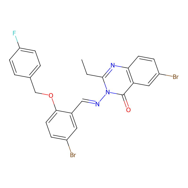 6-溴-3-[[5-溴-2-[(4-氟苯基)甲氧基]苯基]methylideneamino]-2-乙基喹唑啉-4-酮 6-bromo-3-[[5-bromo-2-[(4-fluorophenyl)methoxy]phenyl]methylideneamino]-2-ethylquinazolin-4-one |