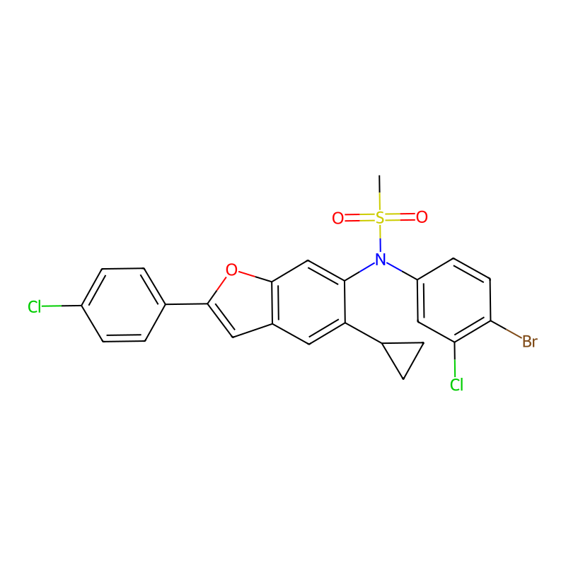 CS(=O)(=O)N(C1=CC(=C(C=C1)Br)Cl)C2=C(C=C3C=C(OC3=C2)C4=CC=C(C=C4)Cl)C5CC5 |