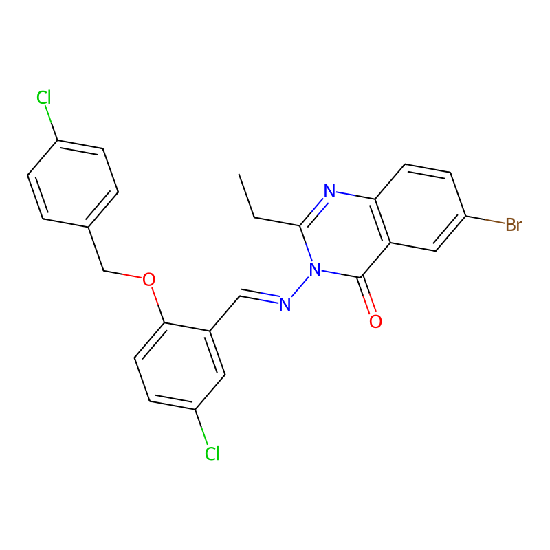 6-溴-3-[[5-氯-2-[(4-氯苯基)甲氧基]苯基]methylideneamino]-2-乙基喹唑啉-4-酮 6-bromo-3-[[5-chloro-2-[(4-chlorophenyl)methoxy]phenyl]methylideneamino]-2-ethylquinazolin-4-one |