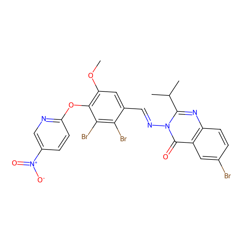 6-溴-3-[[2,3-二溴-5-甲氧基-4-(5-硝基吡啶-2-基)苯基]methylideneamino]-2-丙烷-2-喹唑啉-4-酮 6-bromo-3-[[2,3-dibromo-5-methoxy-4-(5-nitropyridin-2-yl)oxyphenyl]methylideneamino]-2-propan-2-ylquinazolin-4-one |