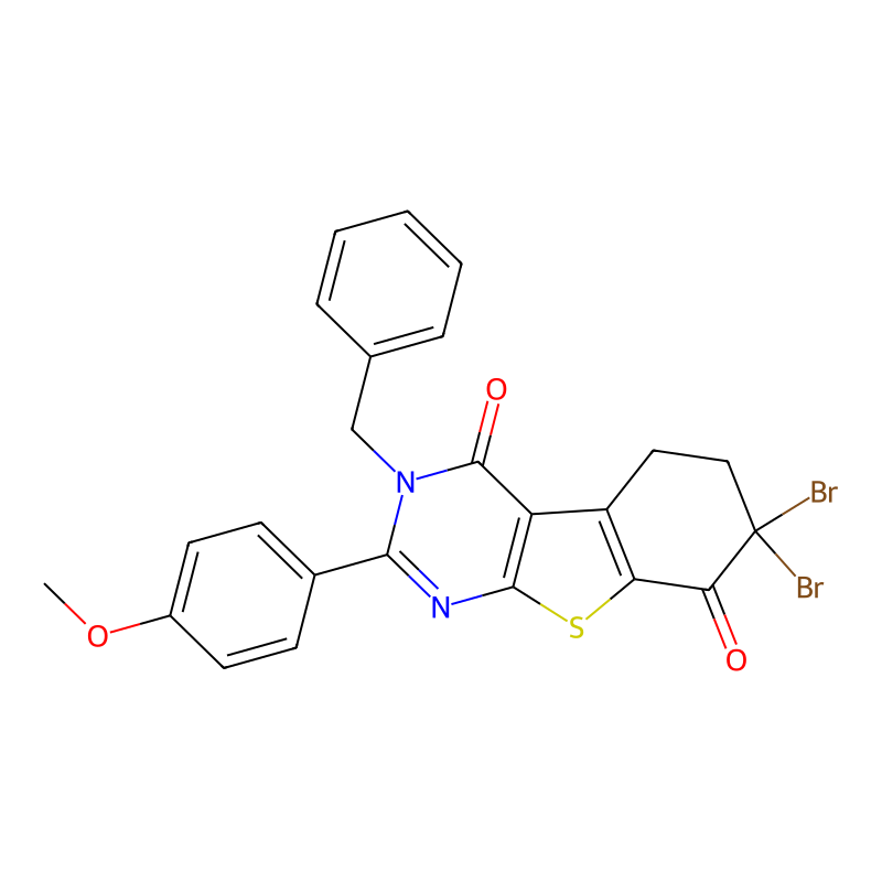 3-苄基-7,7-二溴-2-(4-甲氧基苯基)-5,6-二氢-[1]benzothiolo[2,3-d]嘧啶-4,8-二酮 3-benzyl-7,7-dibromo-2-(4-methoxyphenyl)-5,6-dihydro-[1]benzothiolo[2,3-d]pyrimidine-4,8-dione |