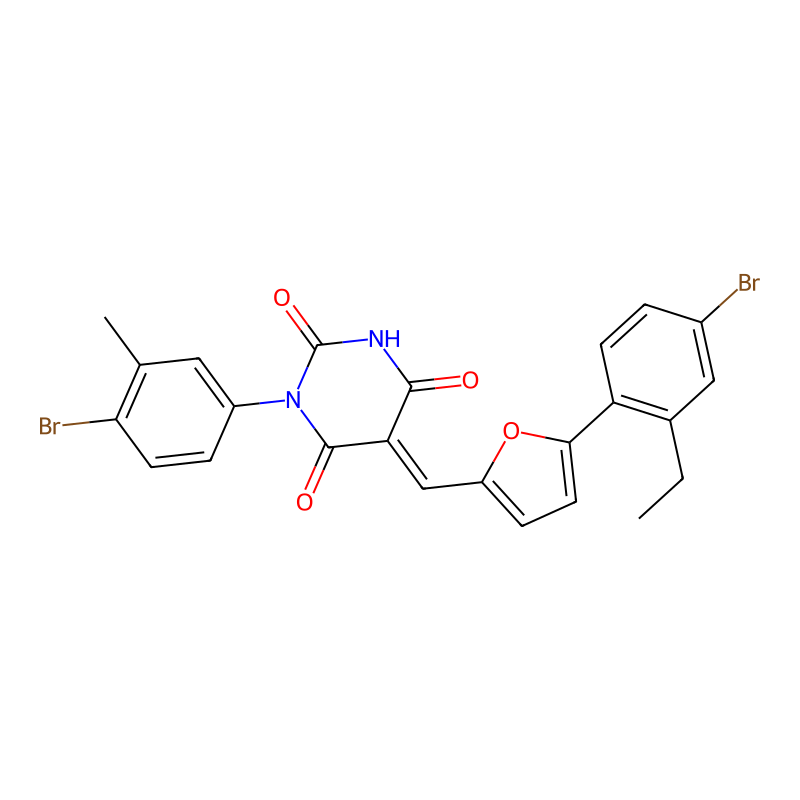 CCC1=C(C=CC(=C1)Br)C2=CC=C(O2)C=C3C(=O)NC(=O)N(C3=O)C4=CC(=C(C=C4)Br)C |