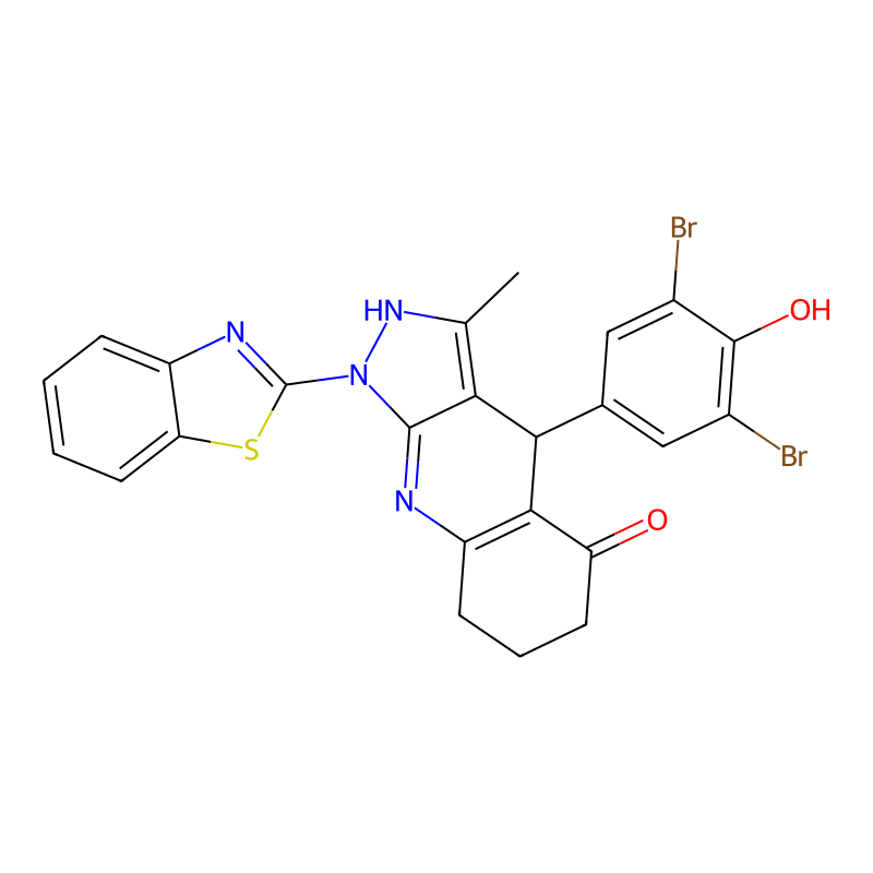 1-(1,3-苯并噻唑-2-基)-4-(3,5-二溴-4-羟基苯基)-3-甲基-4,6,7,8-四氢-2H-吡唑并[3,4-b]喹啉-5-酮 1-(1,3-benzothiazol-2-yl)-4-(3,5-dibromo-4-hydroxyphenyl)-3-methyl-4,6,7,8-tetrahydro-2H-pyrazolo[3,4-b]quinolin-5-one |