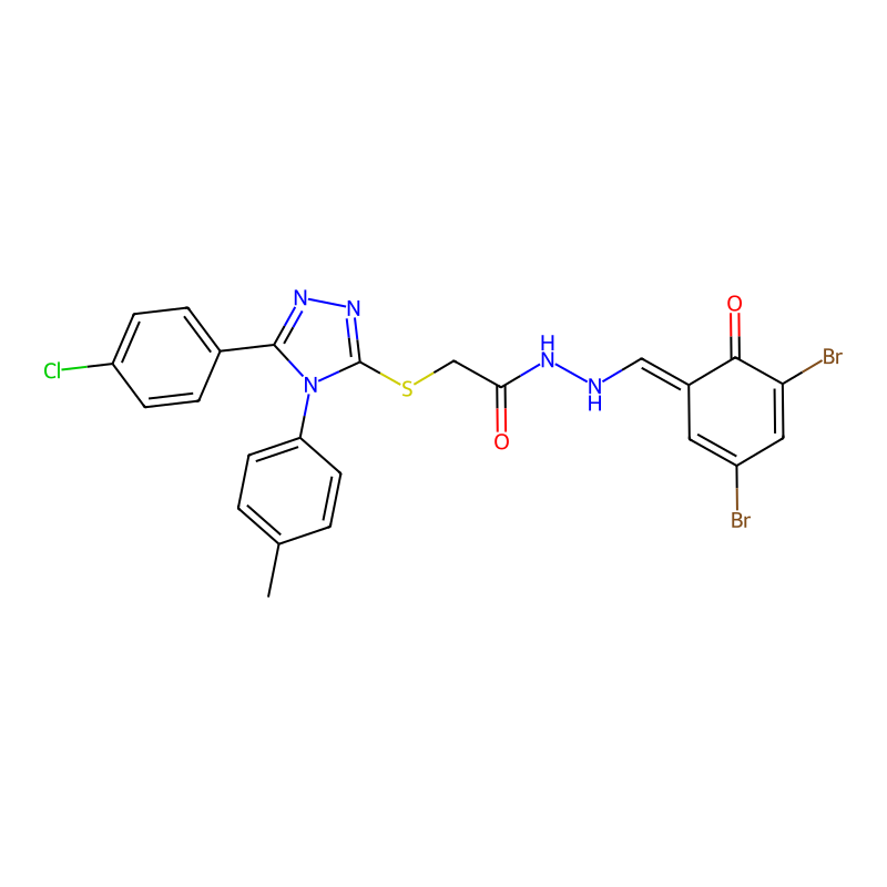 2-[[5-(4-氯苯基)-4-(4-甲基苯基)-1,2,4-三唑-3-基]硫代]-N'-[(E)-(3,5-二溴-6-氧代环己-2,4-二烯-1-亚基)甲基]乙酰肼 2-[[5-(4-chlorophenyl)-4-(4-methylphenyl)-1,2,4-triazol-3-yl]sulfanyl]-N'-[(E)-(3,5-dibromo-6-oxocyclohexa-2,4-dien-1-ylidene)methyl]acetohydrazide |