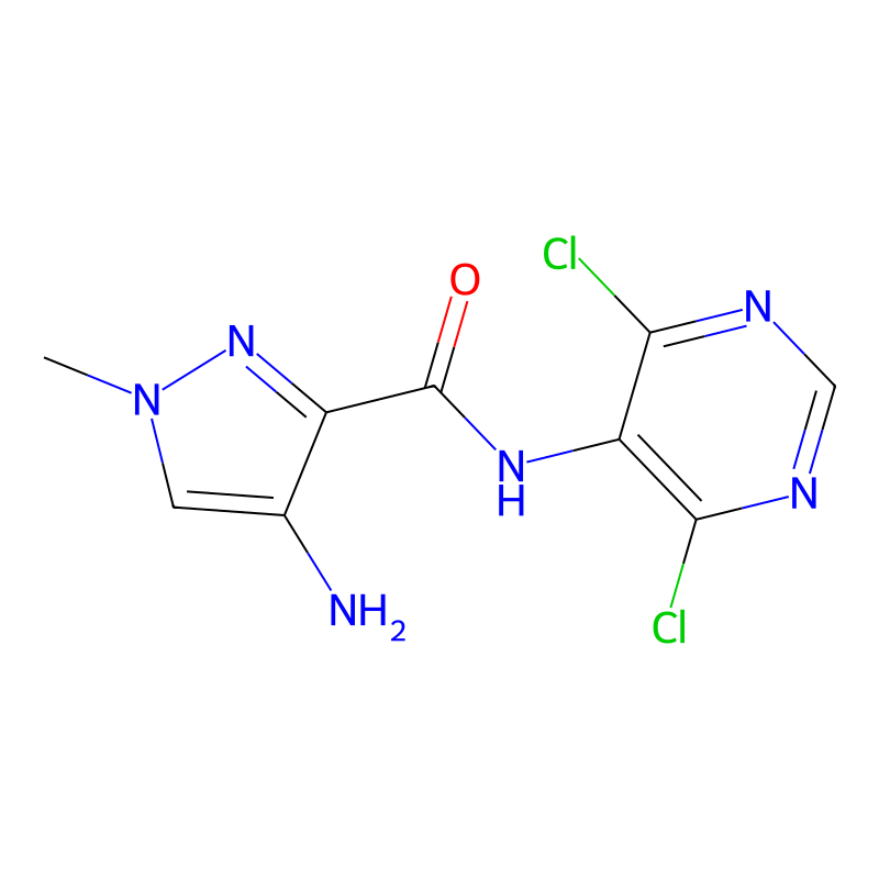 InChI=1S/C9H8Cl2N6O/c1-17-2-4(12)5(16-17)9(18)15-6-7(10)13-3-14-8(6)11/h2-3H,12H2,1H3,(H,15,18) |