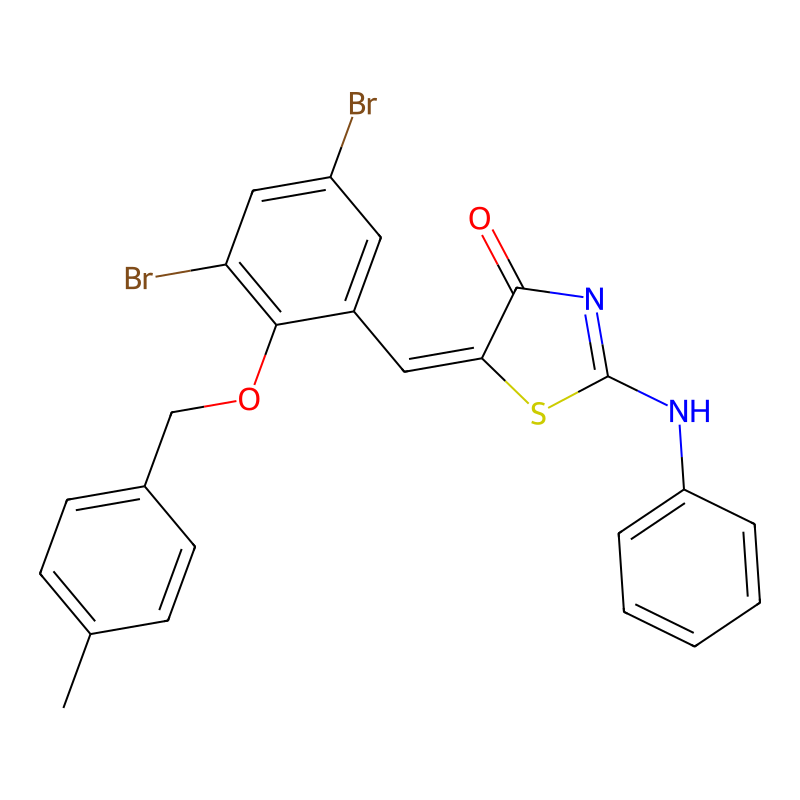 (5Z)-2-苯胺基-5-[[3,5-二溴-2-[(4-甲基苯基)甲氧基]苯基]亚甲基]-1,3-噻唑-4-酮 (5Z)-2-anilino-5-[[3,5-dibromo-2-[(4-methylphenyl)methoxy]phenyl]methylidene]-1,3-thiazol-4-one |