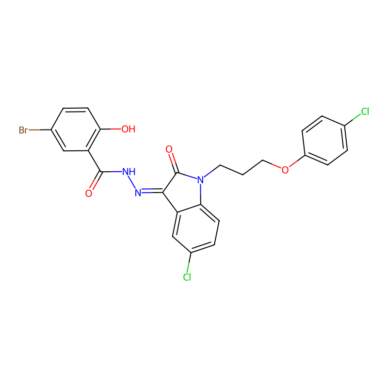 C1=CC(=CC=C1OCCCN2C3=C(C=C(C=C3)Cl)C(=NNC(=O)C4=C(C=CC(=C4)Br)O)C2=O)Cl |