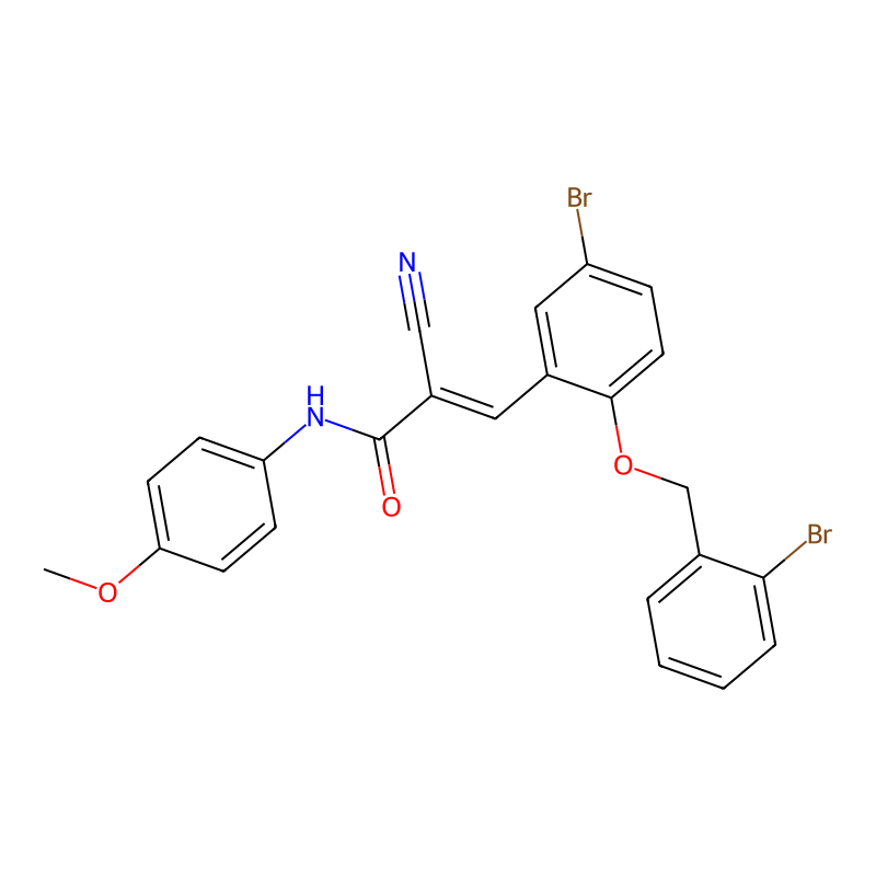 COC1=CC=C(C=C1)NC(=O)C(=CC2=C(C=CC(=C2)Br)OCC3=CC=CC=C3Br)C#N |