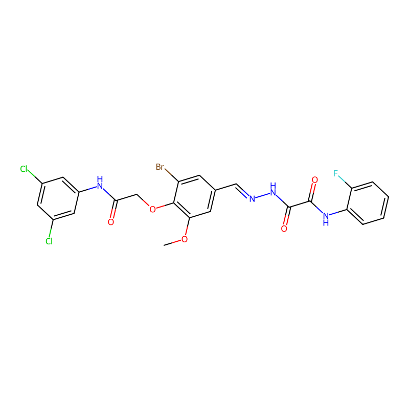 COC1=C(C(=CC(=C1)C=NNC(=O)C(=O)NC2=CC=CC=C2F)Br)OCC(=O)NC3=CC(=CC(=C3)Cl)Cl |