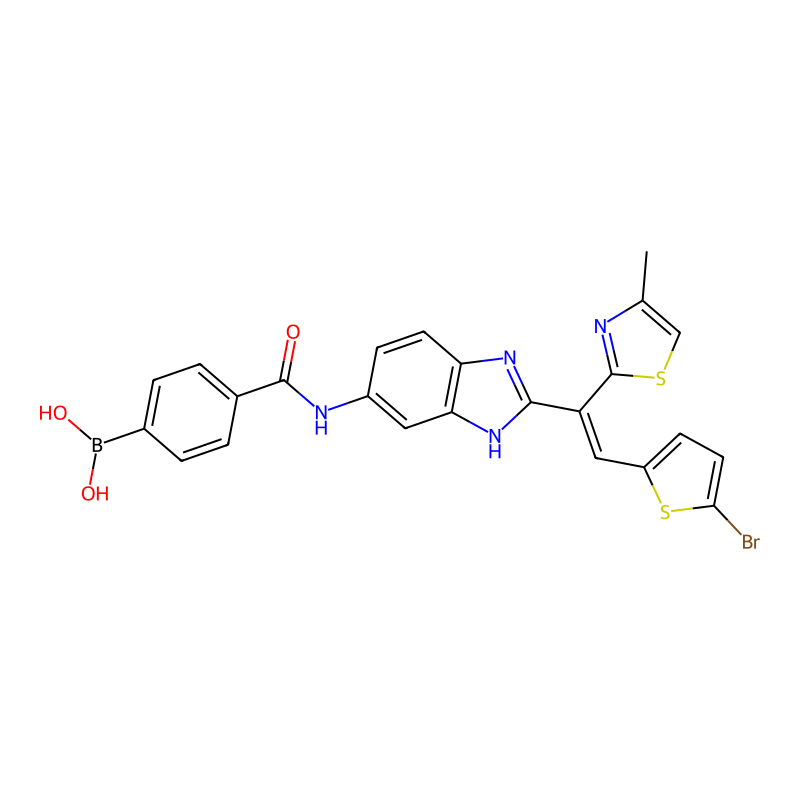 B(C1=CC=C(C=C1)C(=O)NC2=CC3=C(C=C2)N=C(N3)C(=CC4=CC=C(S4)Br)C5=NC(=CS5)C)(O)O |