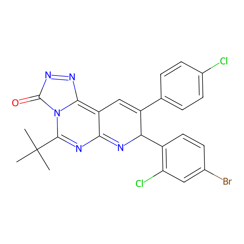 CC(C)(C)C1=NC2=NC(C(=CC2=C3N1C(=O)N=N3)C4=CC=C(C=C4)Cl)C5=C(C=C(C=C5)Br)Cl |