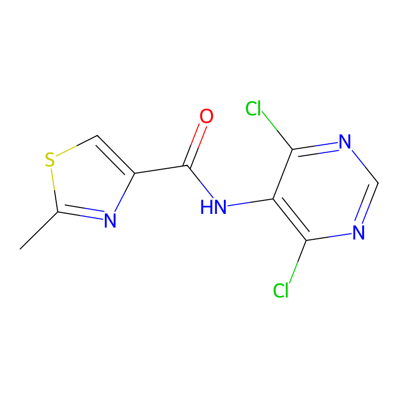 CC1=NC(=CS1)C(=O)NC2=C(N=CN=C2Cl)Cl |