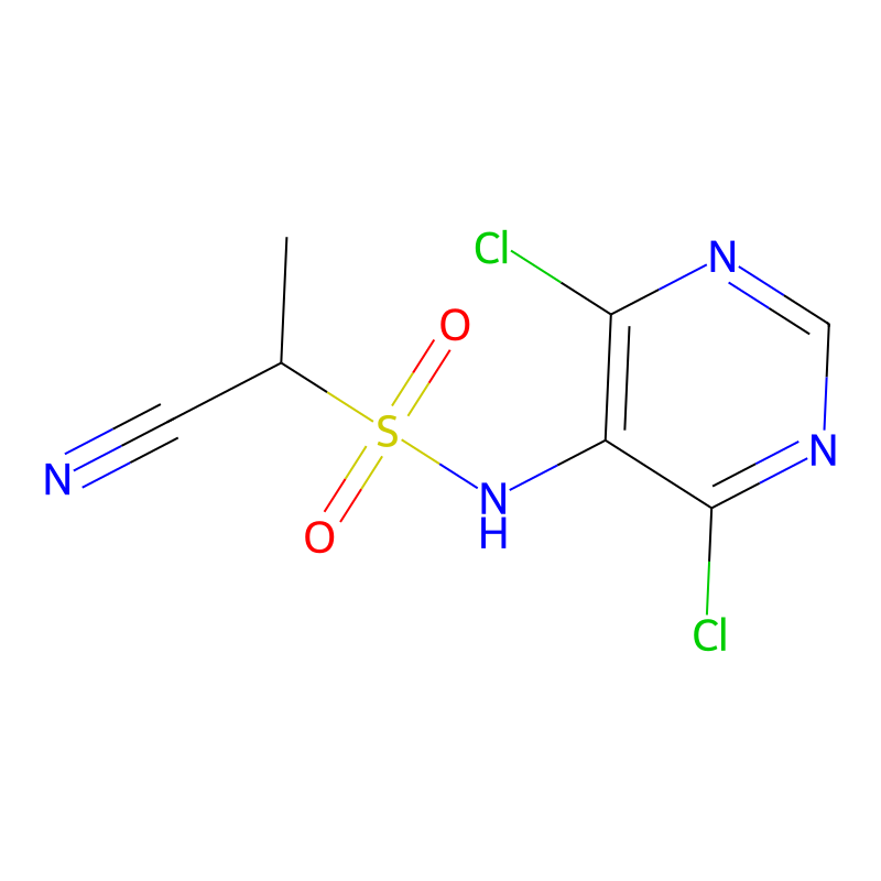 CC(C#N)S(=O)(=O)NC1=C(N=CN=C1Cl)Cl |