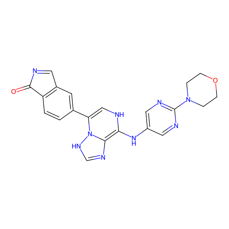 C1COCCN1C2=NC=C(C=N2)NC3=C4N=CNN4C(=CN3)C5=CC6=C(C=C5)C(=O)N=C6 |