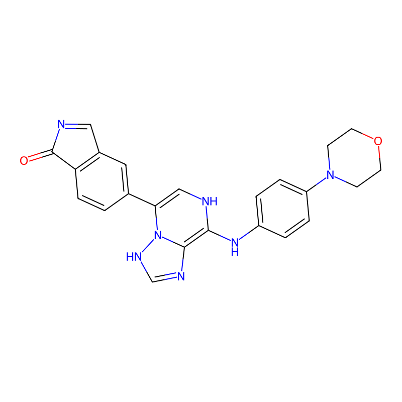 InChI=1S/C23H21N7O2/c31-23-19-6-1-15(11-16(19)12-25-23)20-13-24-21(22-26-14-27-30(20)22)28-17-2-4-18(5-3-17)29-7-9-32-10-8-29/h1-6,11-14,24,28H,7-10H2,(H,26,27) |