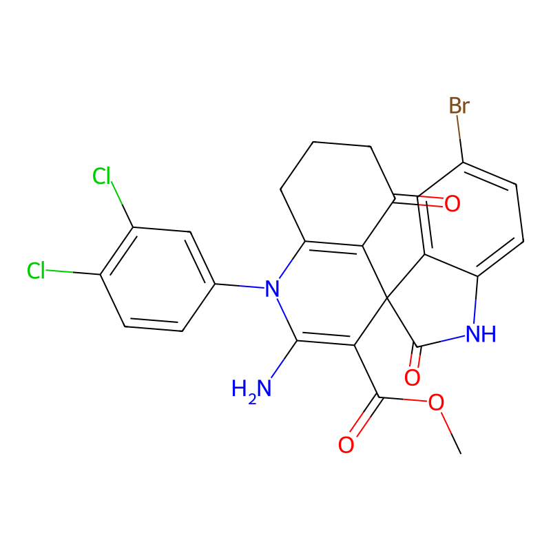 COC(=O)C1=C(N(C2=C(C13C4=C(C=CC(=C4)Br)NC3=O)C(=O)CCC2)C5=CC(=C(C=C5)Cl)Cl)N |
