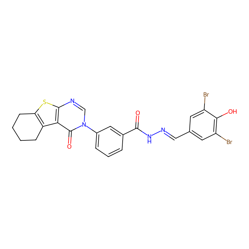 N-[(E)-(3,5-二溴-4-羟基苯基)methylideneamino]-3-(4-氧代-5,6,7,8-四氢-[1]benzothiolo[2,3-d]嘧啶-3-基)苯甲酰胺 N-[(E)-(3,5-dibromo-4-hydroxyphenyl)methylideneamino]-3-(4-oxo-5,6,7,8-tetrahydro-[1]benzothiolo[2,3-d]pyrimidin-3-yl)benzamide |