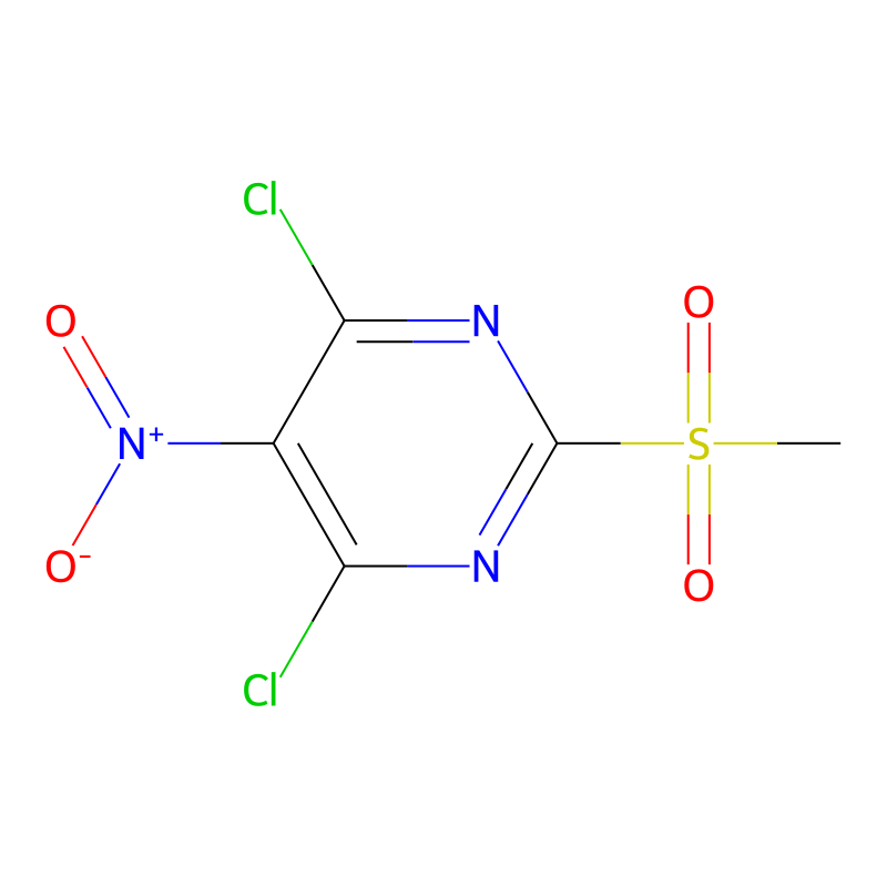 CS(=O)(=O)C1=NC(=C(C(=N1)Cl)[N+](=O)[O-])Cl |