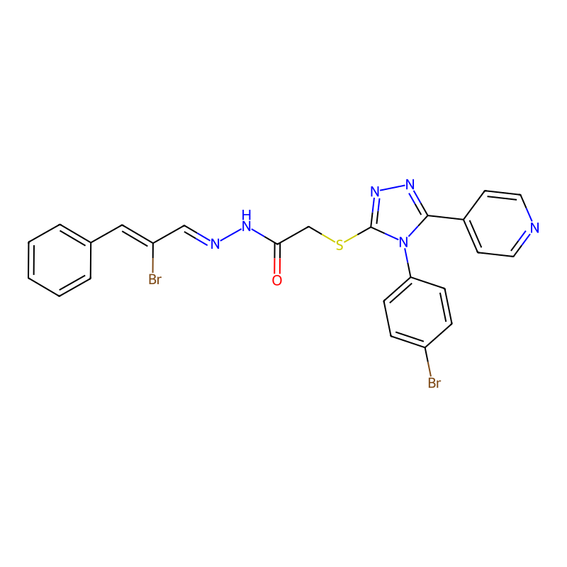InChI=1S/C24H18Br2N6OS/c25-19-6-8-21(9-7-19)32-23(18-10-12-27-13-11-18)30-31-24(32)34-16-22(33)29-28-15-20(26)14-17-4-2-1-3-5-17/h1-15H,16H2,(H,29,33)/b20-14-,28-15- |