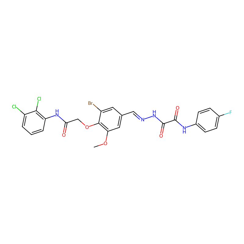 COC1=C(C(=CC(=C1)C=NNC(=O)C(=O)NC2=CC=C(C=C2)F)Br)OCC(=O)NC3=C(C(=CC=C3)Cl)Cl |