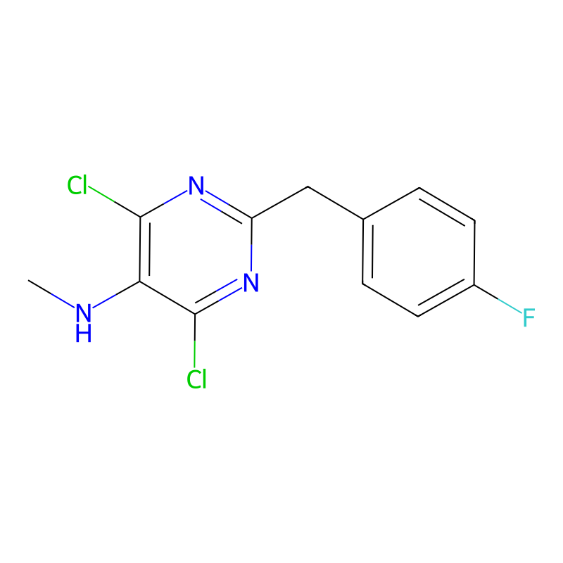 InChI=1S/C12H10Cl2FN3/c1-16-10-11(13)17-9(18-12(10)14)6-7-2-4-8(15)5-3-7/h2-5,16H,6H2,1H3 |