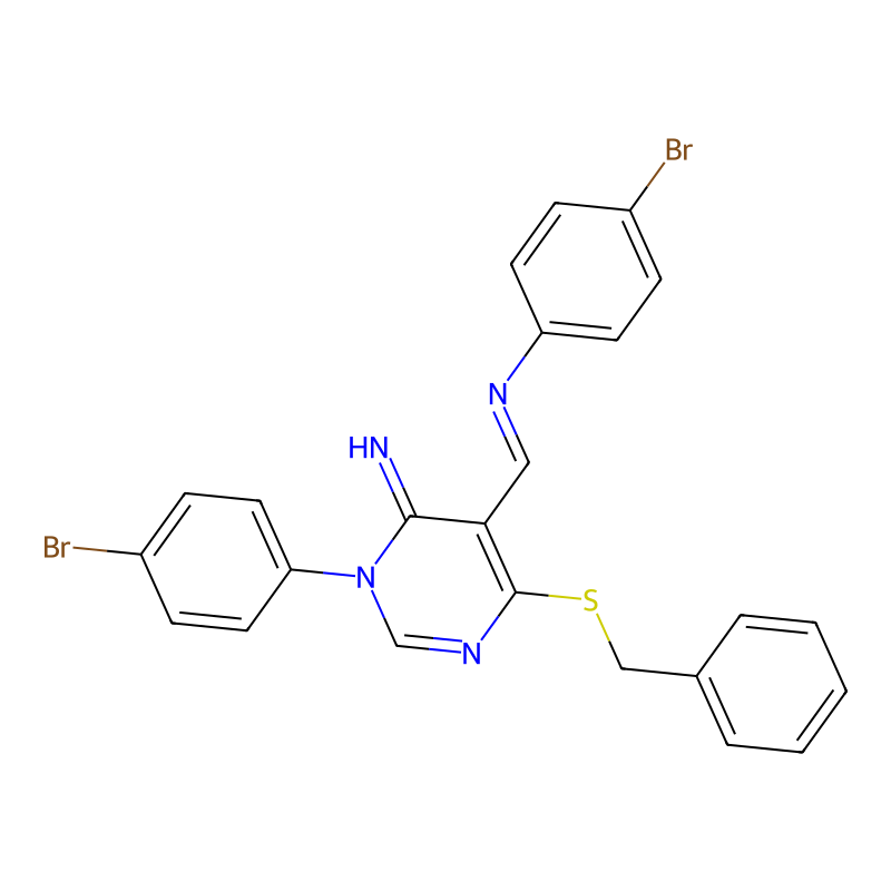 6-苄基硫代-3-(4-溴苯基)-5-[(4-溴苯基)亚氨基甲基]嘧啶-4-亚胺 6-benzylsulfanyl-3-(4-bromophenyl)-5-[(4-bromophenyl)iminomethyl]pyrimidin-4-imine |