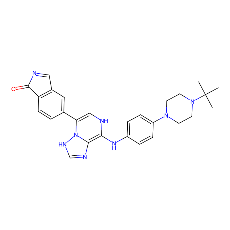 CC(C)(C)N1CCN(CC1)C2=CC=C(C=C2)NC3=C4N=CNN4C(=CN3)C5=CC6=C(C=C5)C(=O)N=C6 |