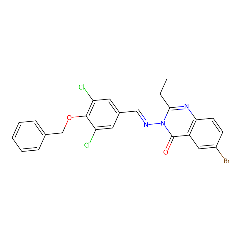 6-溴-3-[(3,5-二氯-4-苄氧基苯基)methylideneamino]-2-乙基喹唑啉-4-酮 6-bromo-3-[(3,5-dichloro-4-phenylmethoxyphenyl)methylideneamino]-2-ethylquinazolin-4-one |