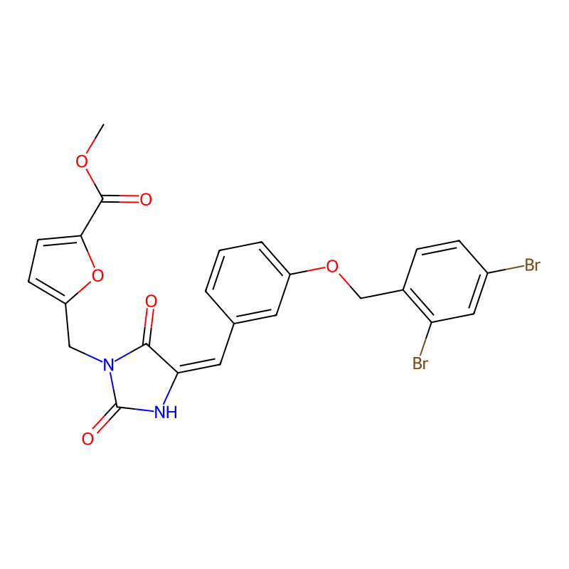 COC(=O)C1=CC=C(O1)CN2C(=O)C(=CC3=CC(=CC=C3)OCC4=C(C=C(C=C4)Br)Br)NC2=O |