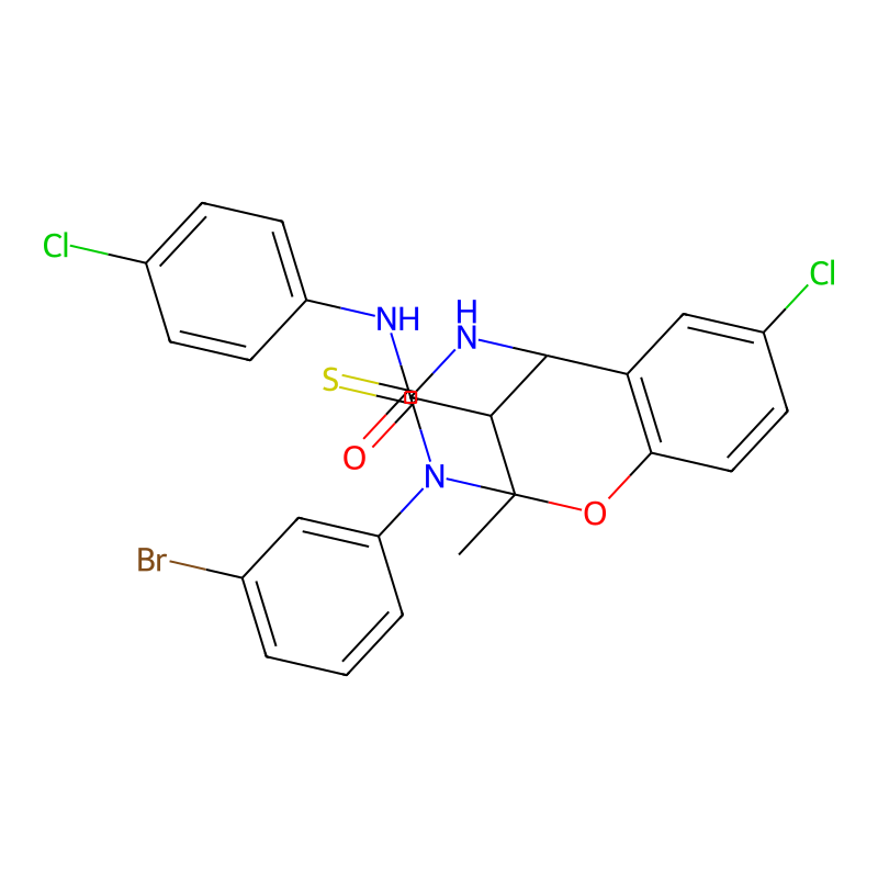 CC12C(C(C3=C(O1)C=CC(=C3)Cl)NC(=S)N2C4=CC(=CC=C4)Br)C(=O)NC5=CC=C(C=C5)Cl |