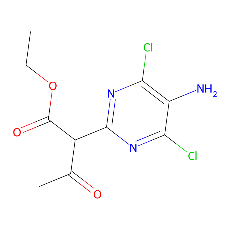 CCOC(=O)C(C1=NC(=C(C(=N1)Cl)N)Cl)C(=O)C |