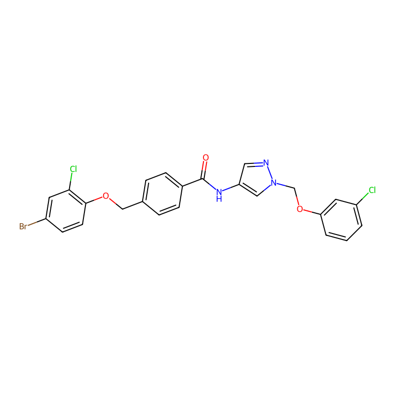 C1=CC(=CC(=C1)Cl)OCN2C=C(C=N2)NC(=O)C3=CC=C(C=C3)COC4=C(C=C(C=C4)Br)Cl |