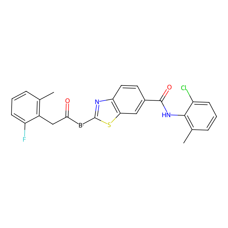 InChI=1S/C24H18BClFN2O2S/c1-13-5-4-8-18(27)16(13)12-21(30)25-24-28-19-10-9-15(11-20(19)32-24)23(31)29-22-14(2)6-3-7-17(22)26/h3-11H,12H2,1-2H3,(H,29,31) |